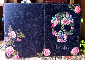 Обложка на паспорт с тисненным рисунком. Внутри есть кармашек для банковской карточки и уголок, для того, чтобы вложить какой-нибудь документ. Есть специальная резинка, благодаря которой, паспорт не раскроется в сумке.