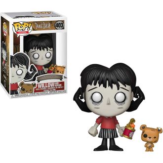 Фигурка Funko POP! Vinyl: Games: Don't Starve: Willow & Bernie. Уиллоу (Willow) — первый открываемый персонаж и первая девушка в игре. Судя по репликам, обладает довольно скверным характером. Очень любит огонь и не получает от него урона. Берни (Bernie) - уникальный предмет и спутник Уиллоу в Don't Starve Together. Является плюшевым мишкой, который изображен на портрете Уиллоу в меню выбора персонажей. Появляется изначально в ее инвентаре, может быть выложен на землю. Имеет прочность, которую не тратит в инвентаре, сундуке или будучи выложенным.