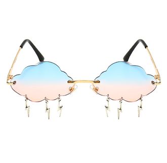 Линзы очков выполнены в форме облаков. На линзах брелоки в виде молний.